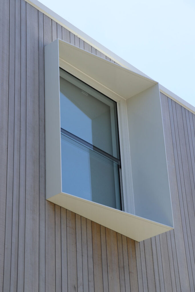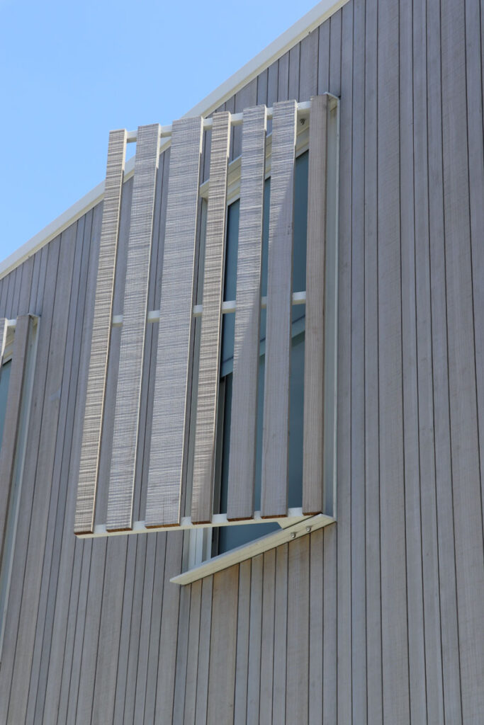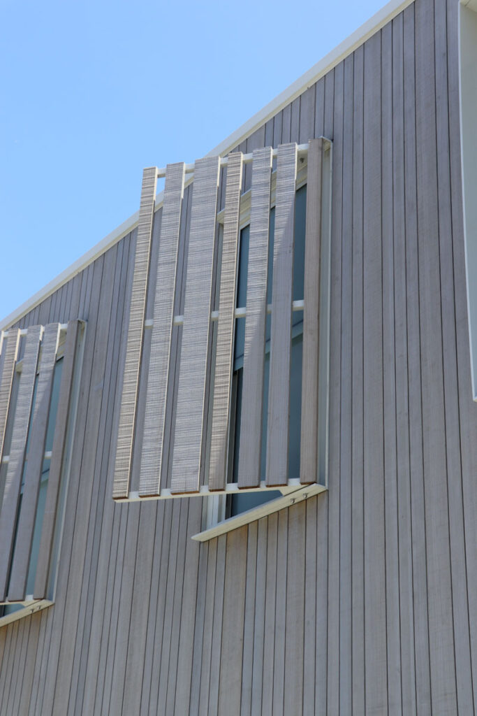 • Slat Screen Shrouds: Abodo Timber Cladding provide a balance of light control and privacy while maintaining the home’s contemporary rhythm.