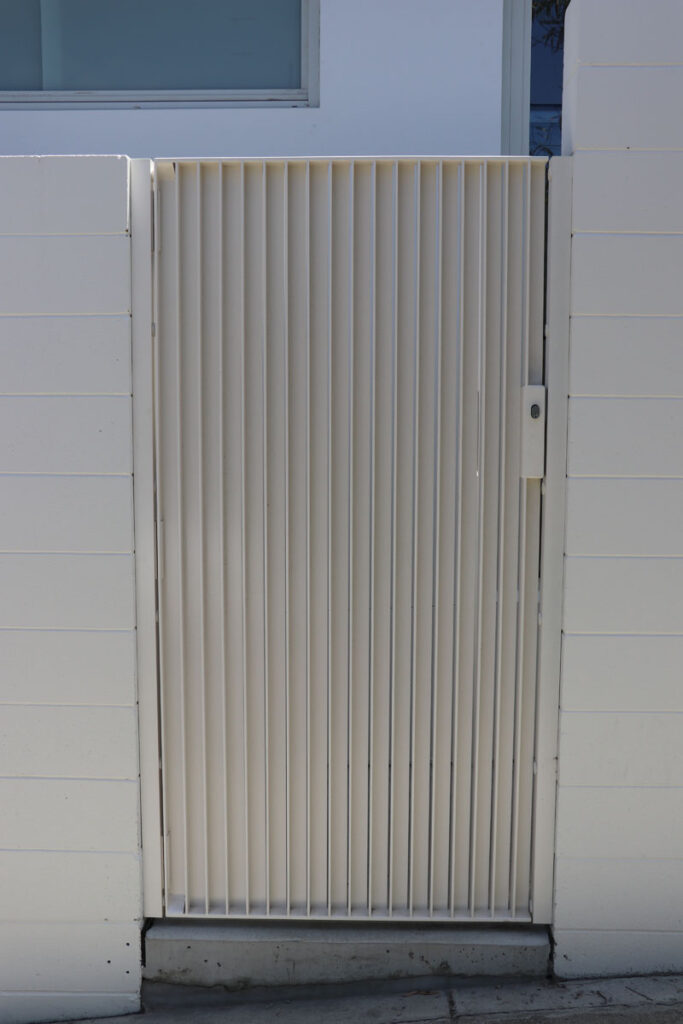 Products Supplied by Alumac Industries: Centurion Window Shrouds, Abodo Feature Timber Slat Screen Shrouds, Custom Entry Gate, Downpipe Shrouds, Roof-Mounted Planter Boxes